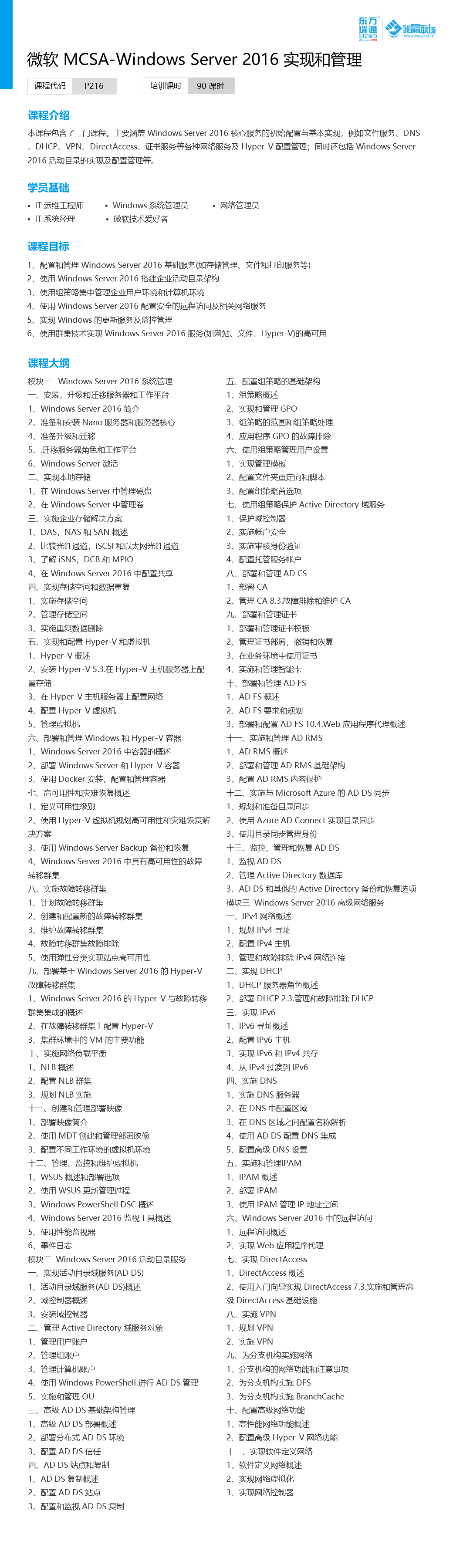 微软MCSA-Windows Server 2016实现和管理,测试课程
